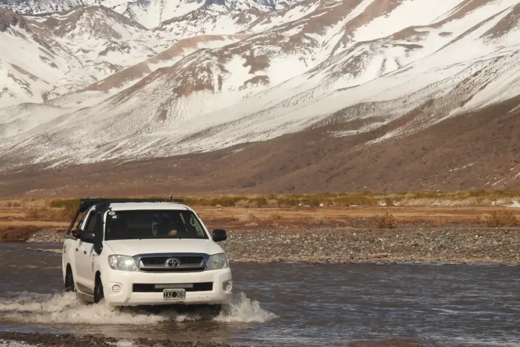 Partiremos desde San Rafael hacia la Villa 25 de Mayo, seguiremos por la RP 150 y nos adentraremos en un paisaje de montañas imponentes, valles verdes y ríos cristalinos. Veremos en la margen izquierda el cerro El Imperial y de fondo el imponente Cerro el Diamante. Llegaremos a la RN 40 vieja, pasaremos por el Dique Agua del Toro, luego hasta el paraje Las Aucas, continuaremos por un camino de montaña, pasaremos de un valle a otro y retomaremos la ruta RP 101 hasta el paraje el Sosneado. Nuestro recorrido te llevará por caminos sinuosos, atravesando paisajes de ensueño. Nos adentraremos en la montaña, por un camino que nos llevará a descubrir valles escondidos y paisajes que te dejarán sin aliento. Éste circuito puede variar debido a las condiciones de las rutas.